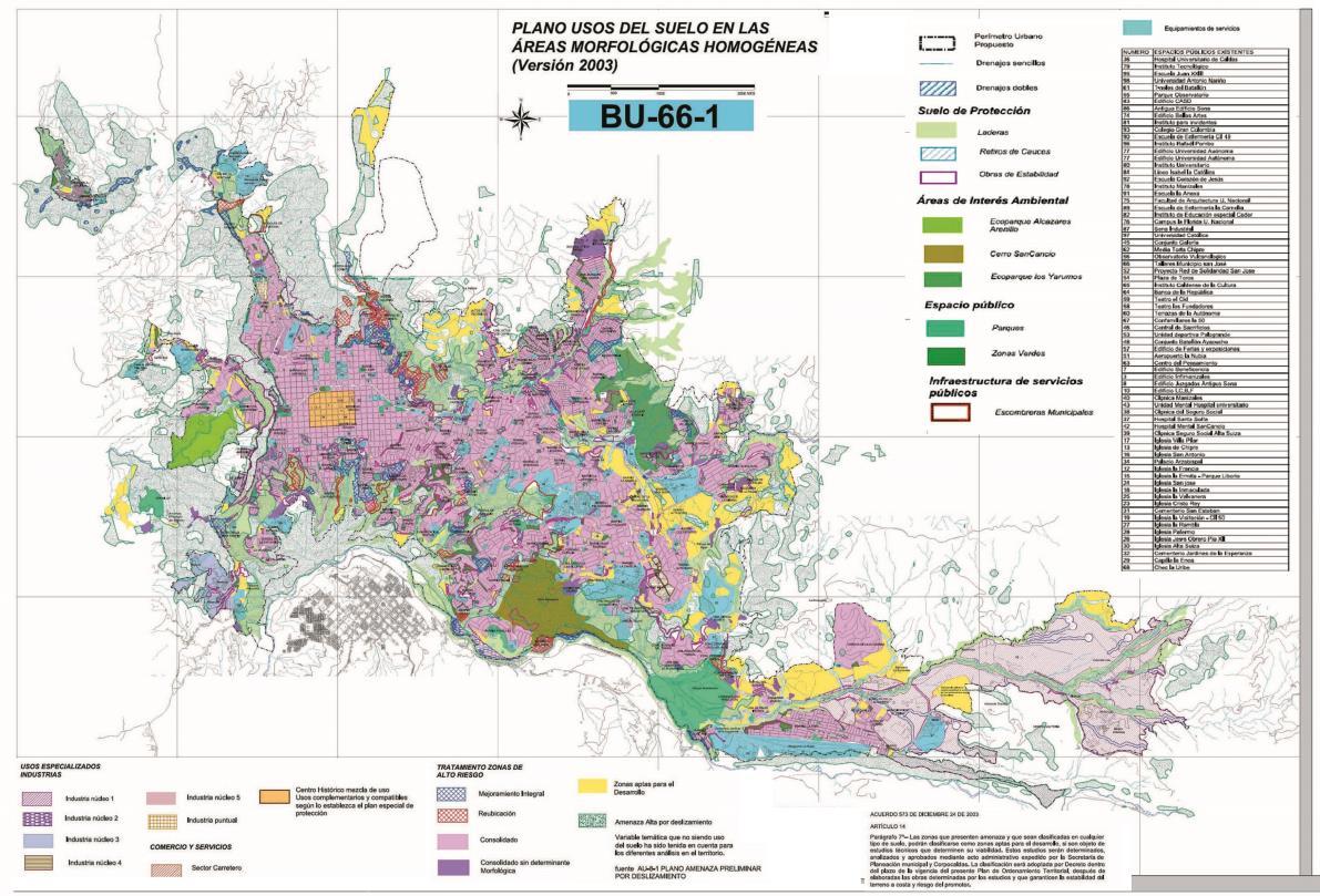 Manizales: Usos del Suelo en áreas morfológicas Homogéneas – 2003.