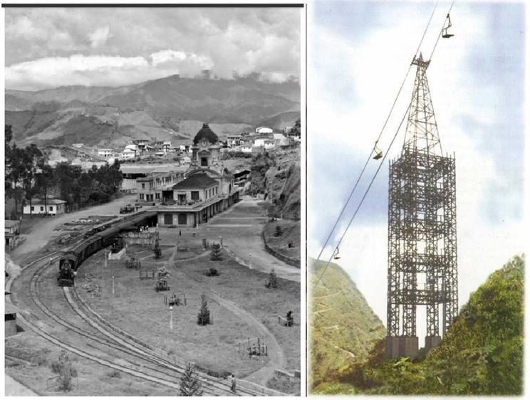 Estación Manizales del Ferrocarril de Caldas y Torre 20 del Cable Aéreo Manizales-Mariquita. In: Juan C . Ardila y La Patria.