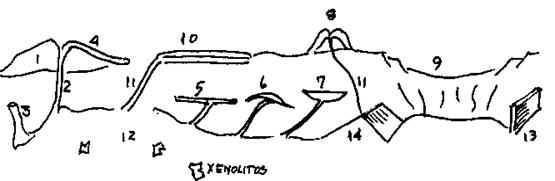 - Tienen techo dómico escalonado y presentan xenolitos, es decir, inclusiones extrañas, embebidas en el magma.
