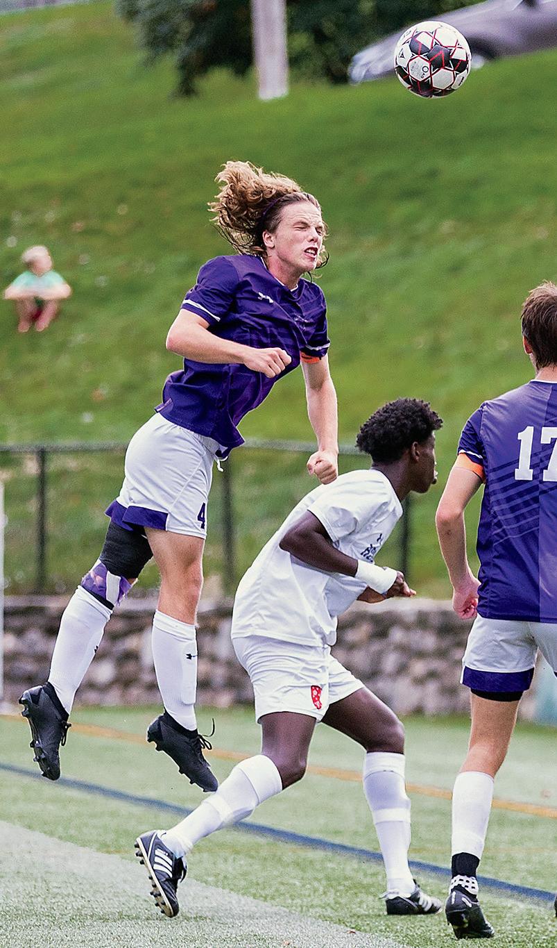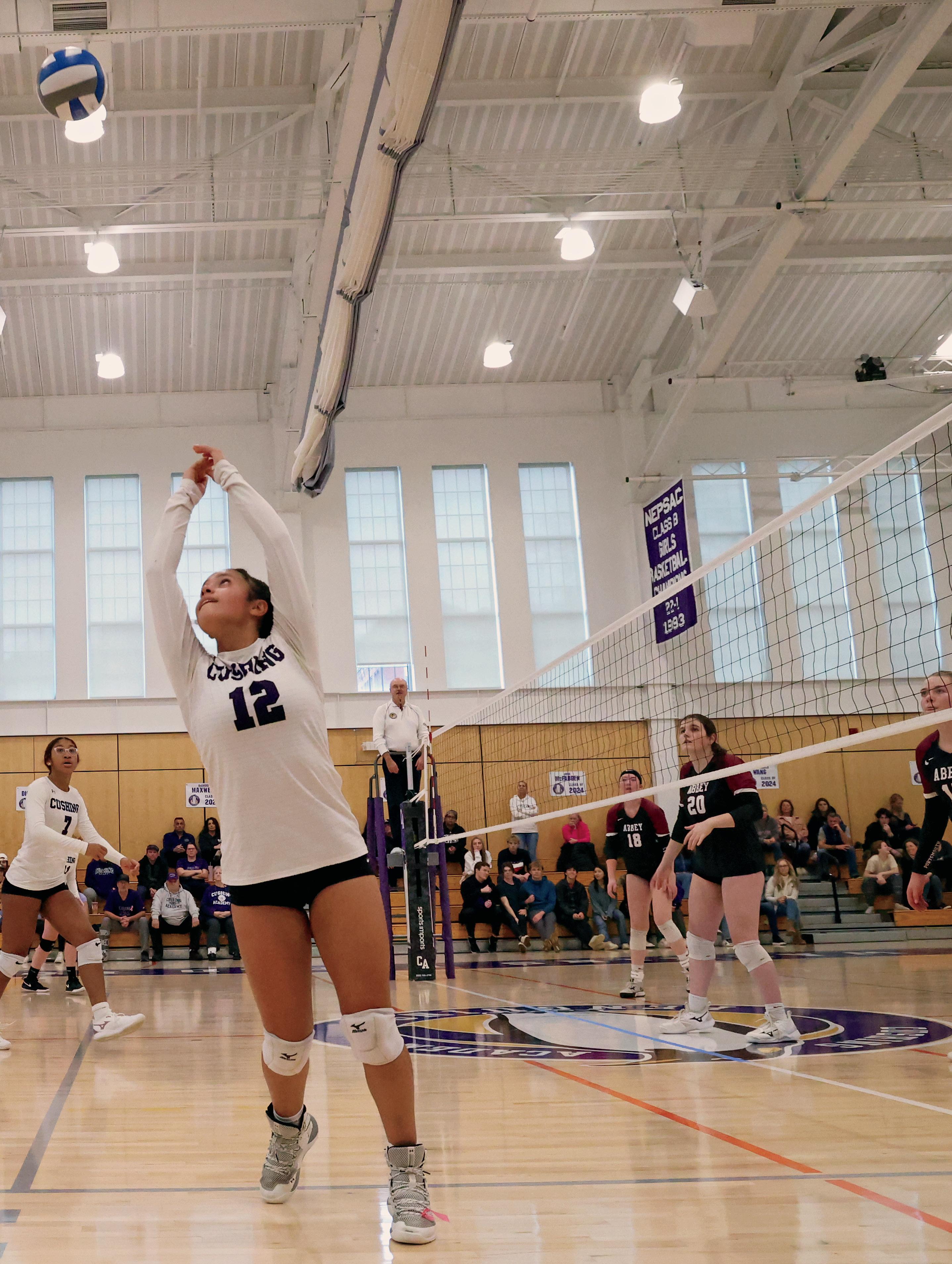 Aryhanna Vasquez ’25 sets up Josie McFadden ’24 for a spike en route to a 3–1 victory over Portsmouth Abbey in the NEPSAC Class C semifinals. Varsity volleyball had an outstanding season, going 23–2 and making it to their second consecutive championship game.