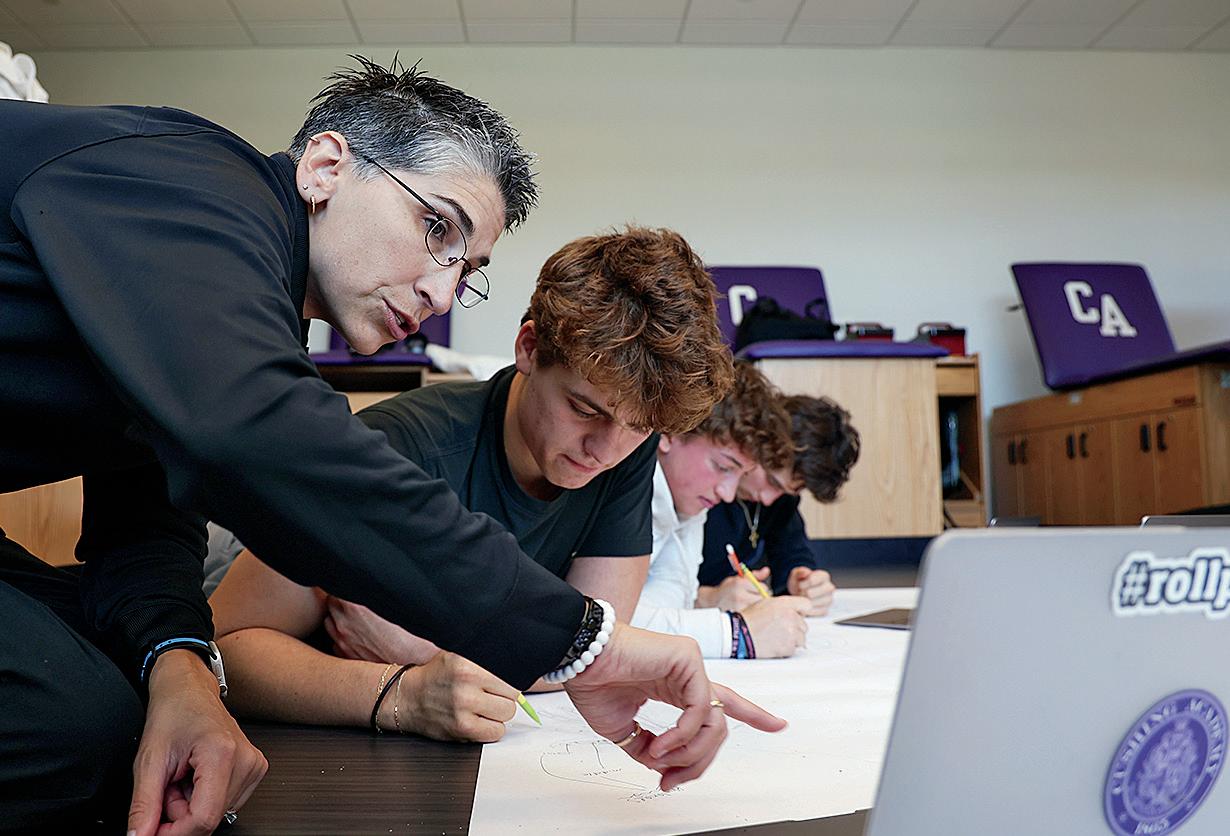 Nate Parreira ’24 takes advantage of a beautiful fall day to practice perspective drawing in his Architectural Design class.