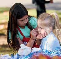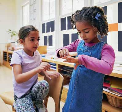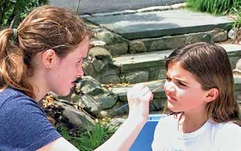 Emma Lenze delights in an experiential lesson while Maeve Reed looks on.