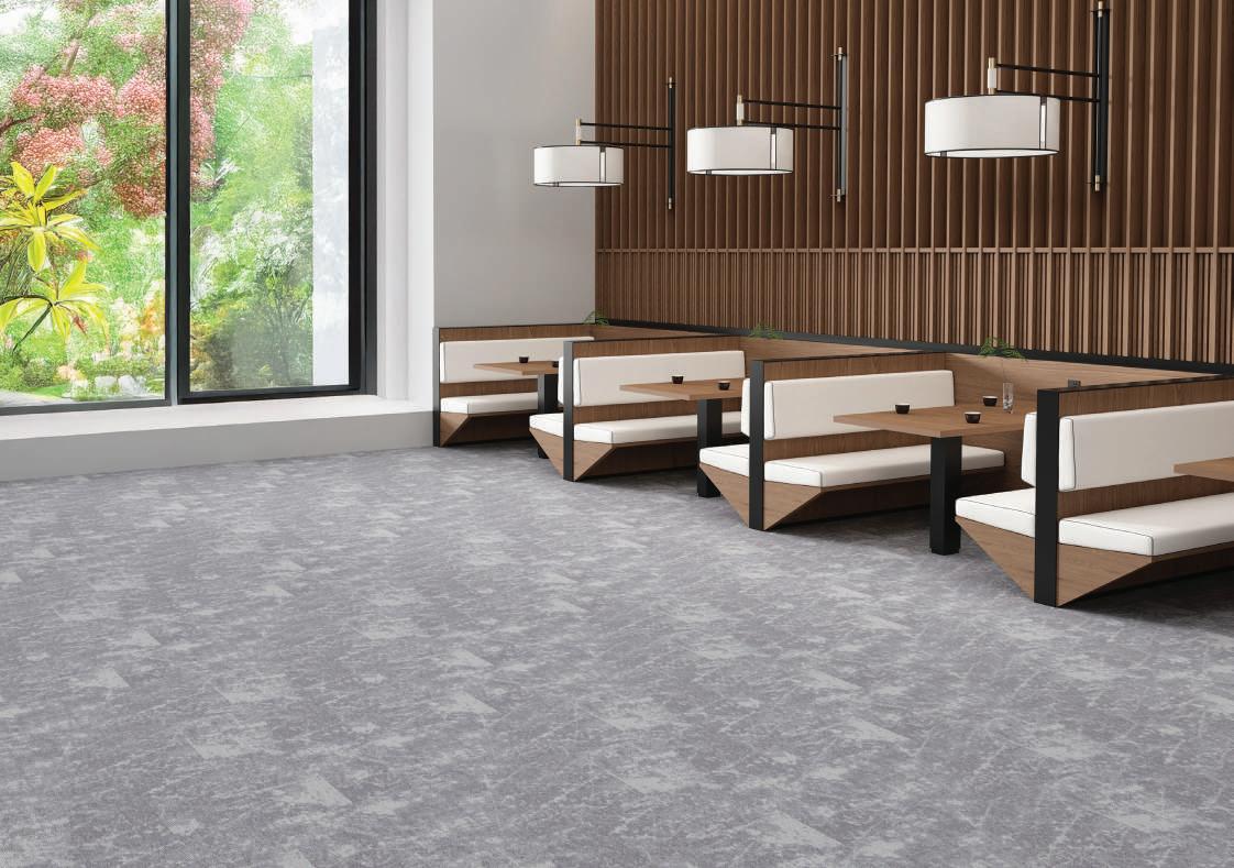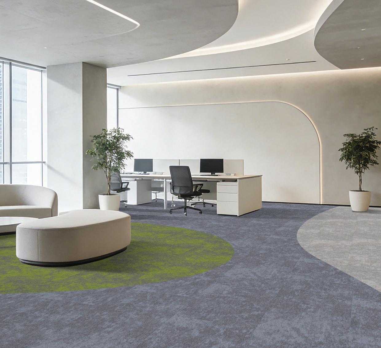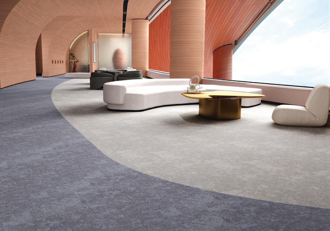 The design draws from nature thus echoing the softness of clouds, the fluidity of water, and the texture of weathered stone. These subtle, organic patterns create a sense of calm focus while maintaining a clean, contemporary look suitable for high-traffic commercial environments.