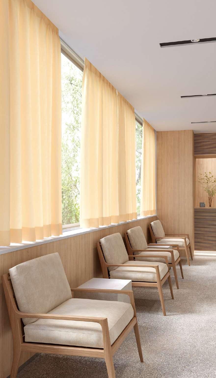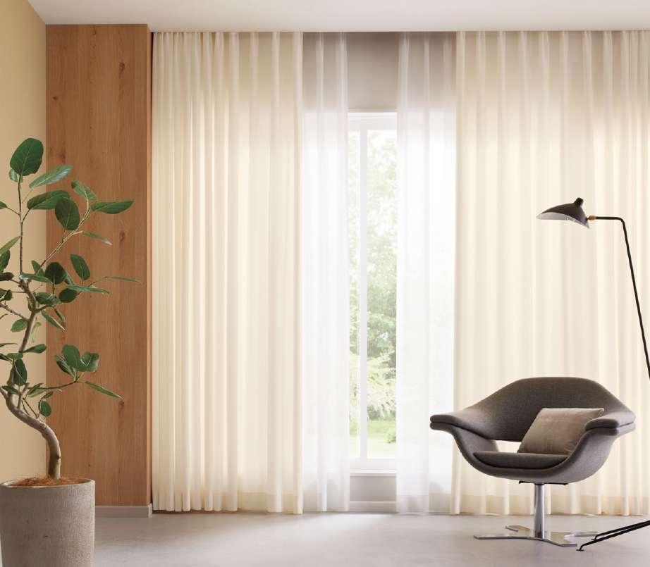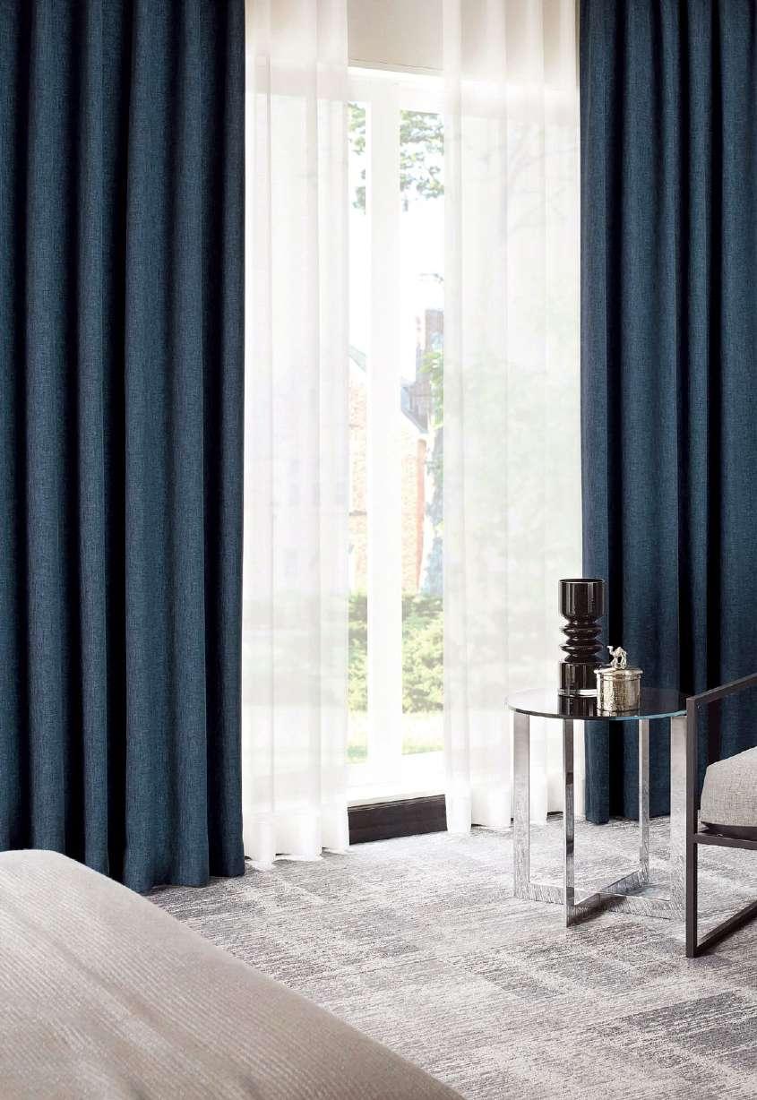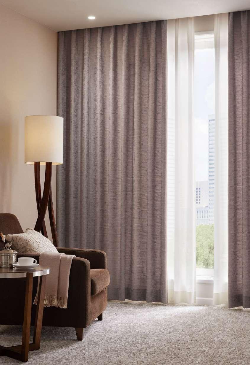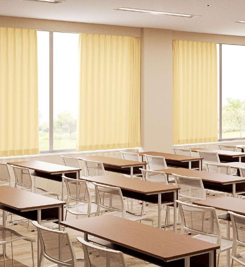 ラミネートまたはコーティング加工を施し、一般 的なドレープと比較し音を遮る効果があります。