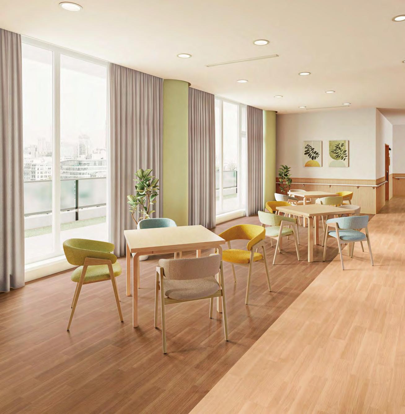 病院、福祉施 設、オフィス、学校 、商業施設など どんな空間において も、大切にしたいのは「Joy of Design」。