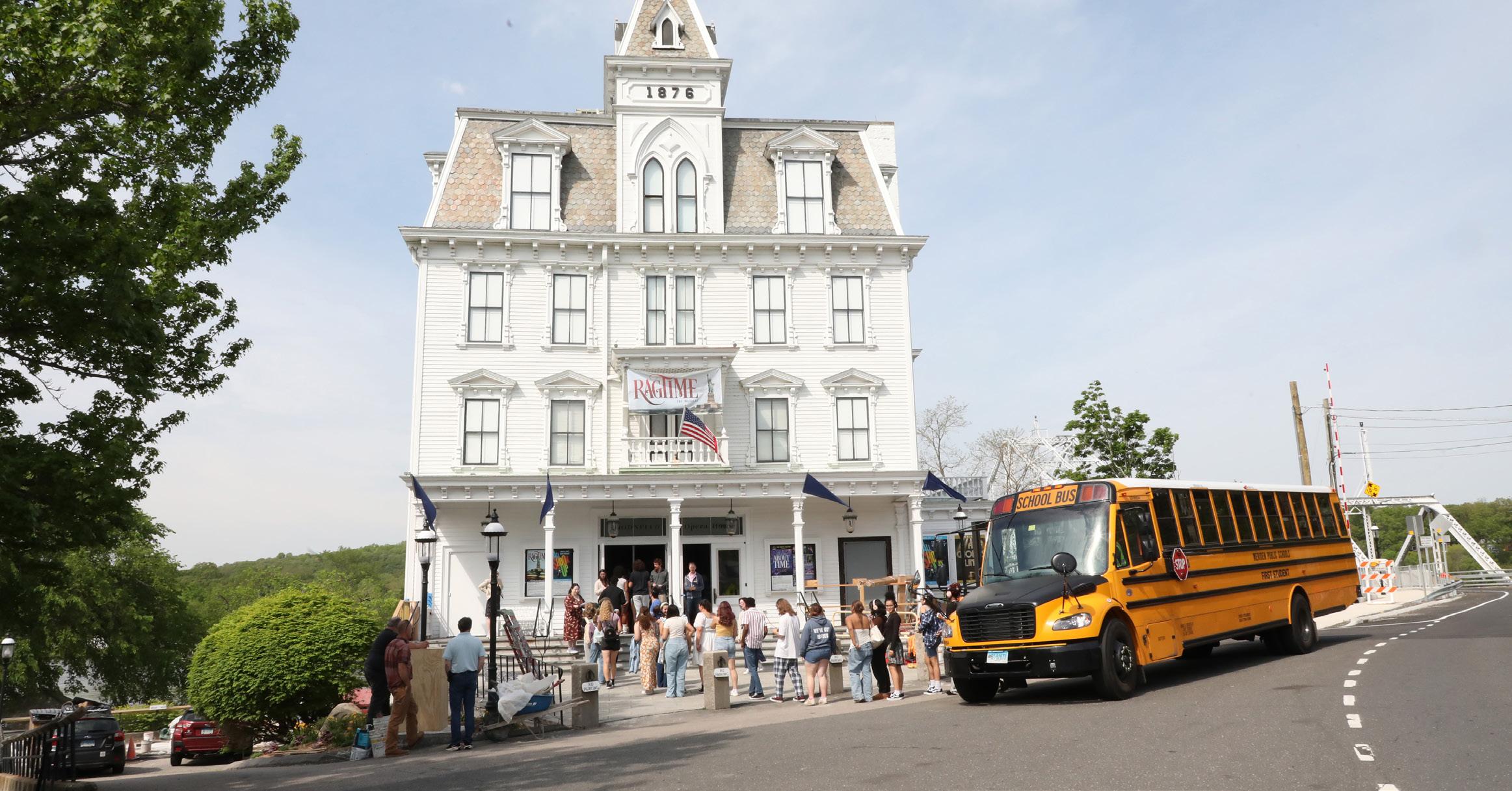 Each season, our Arts Education Collaboration brings elementary, middle, and high school students from Windham, Middlesex, Hartford, New Haven, New London, Tolland, and Fairfield Counties to our productions at The Goodspeed or The Terris Theatre, giving them a special behind-the-scenes look into the making of a production through theatrical workshops with cast members and Goodspeed teaching artists. Goodspeed provides