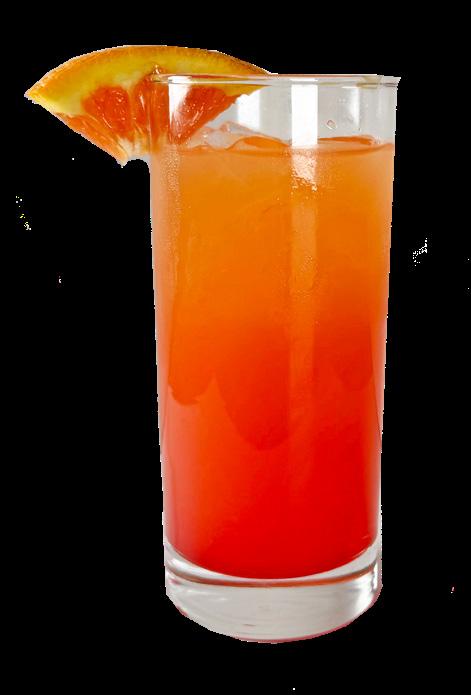 Rum, Orange Juice, Pineapple Juice, Lime Juice & Grenadine, garnished with an Orange Slice