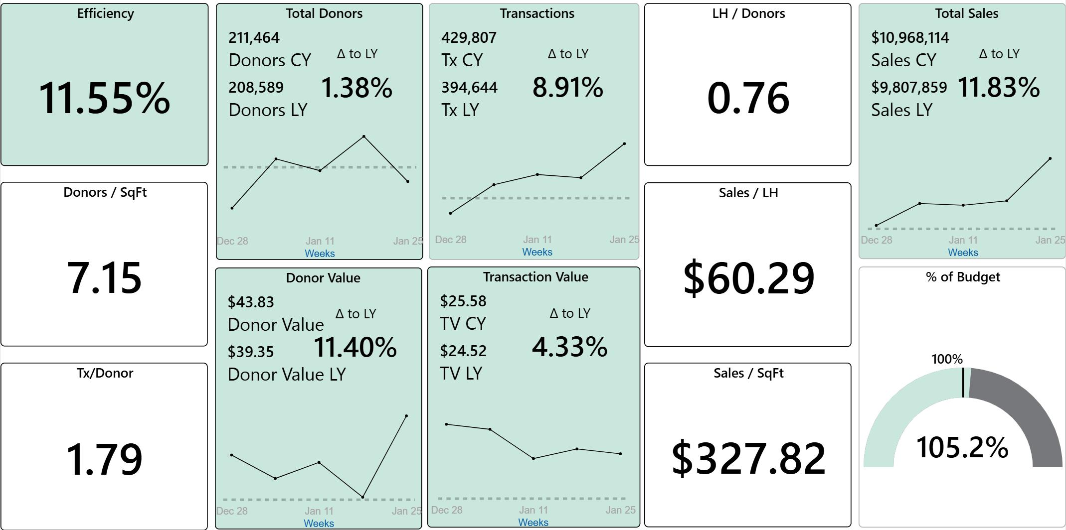 January presented several challenges, which the team rose to meet with resilience and determination. Colder-than-normal weather drove increased shopper traffic, while we also navigated an unusual donor trend. Even while managing illness and a donor backlog, they stayed committed to driving improvements in Donation Value and Transaction Value compared to last year.