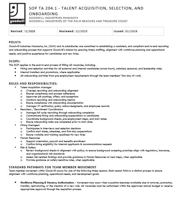 • Talent 204.1 – Talent Acquisition, Selection and Onboarding