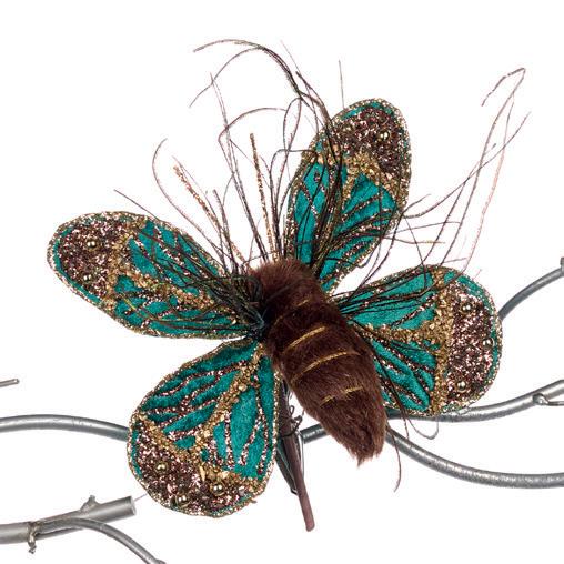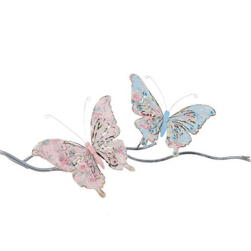 23129 + FABR.FLORAL BUTTERFLY ON CLIP ASS/2 BLU/PNK 21CM