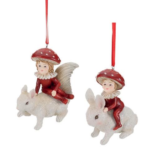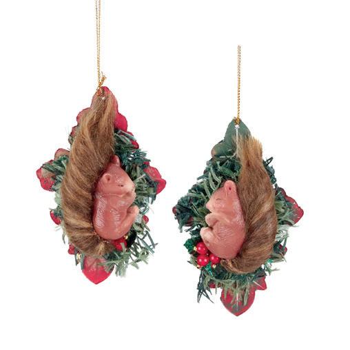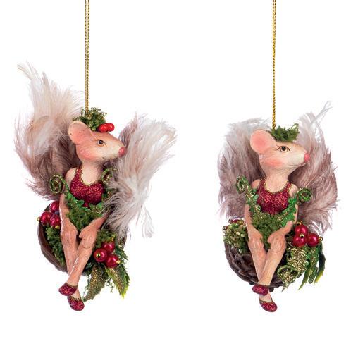 FURRY JUMP.FAIRY SQUIRREL ORN BRWN 31CM T 82143 + GLSS FLOWER SHELL ORN ASS/2 PRPL/BLU 12,5CM