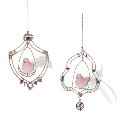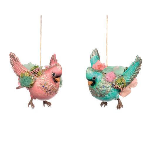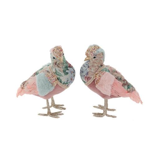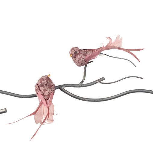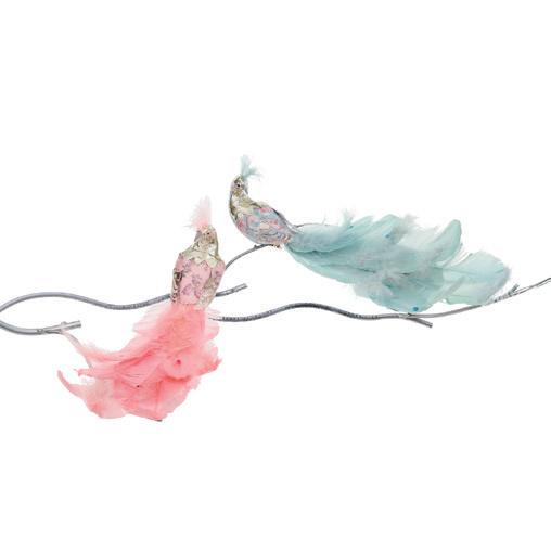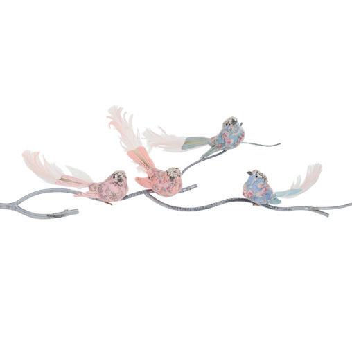 50011 + FABR.FLORAL BIRD ON CLIP ASS/4 PNK/BLU 20CM