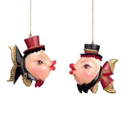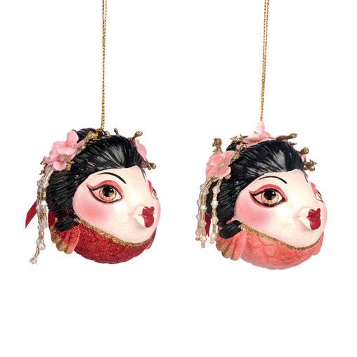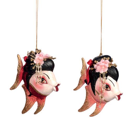 GEISHA ANGEL FISH ORN ASS/2 RD/BLK 12CM