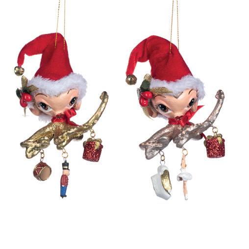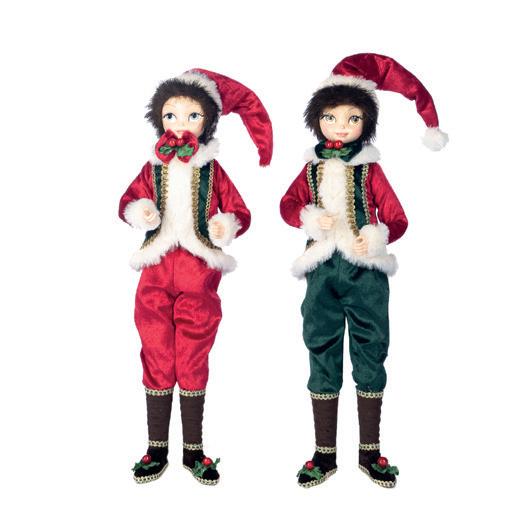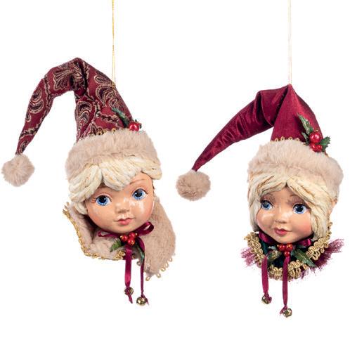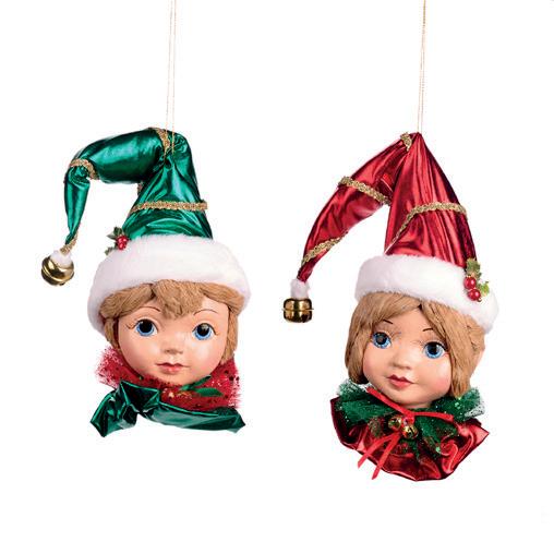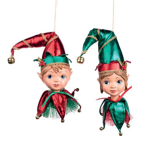BABY HELP.ELF HEAD ORN ASS/2 RD/GRN 25CM