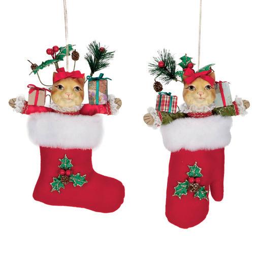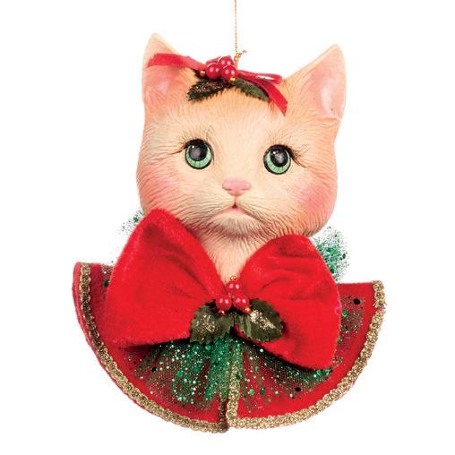 XMAS CAT HEAD ORN RD/OR 19CM