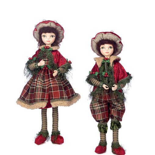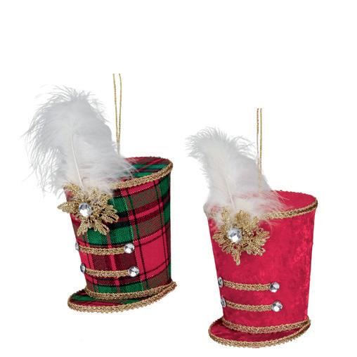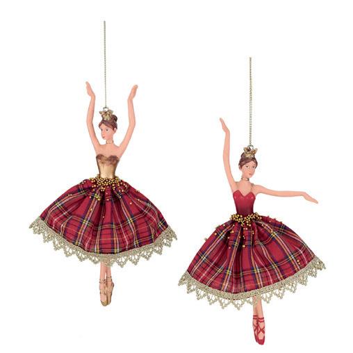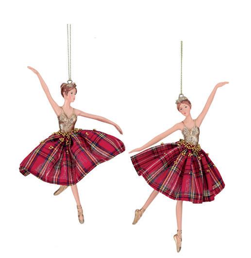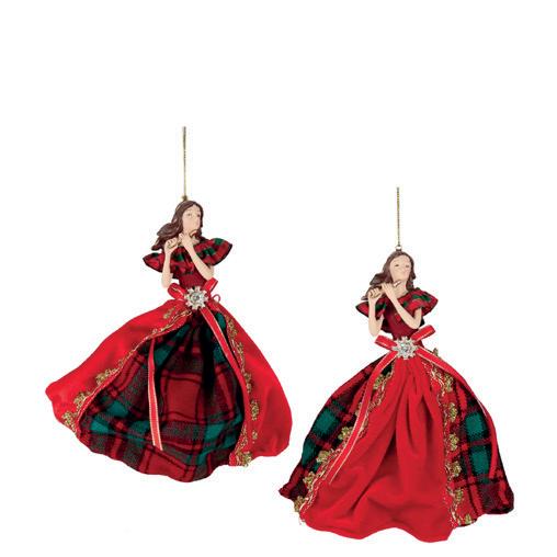 FABR.TARTAN MUS.ANGEL ORN ASS/2 RD/GRN 23CM AS 25165