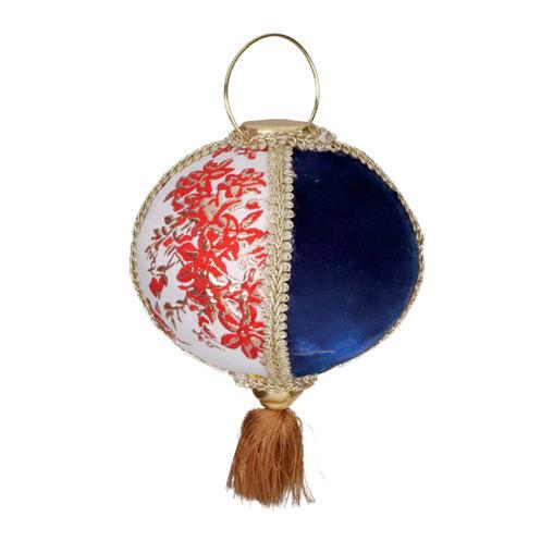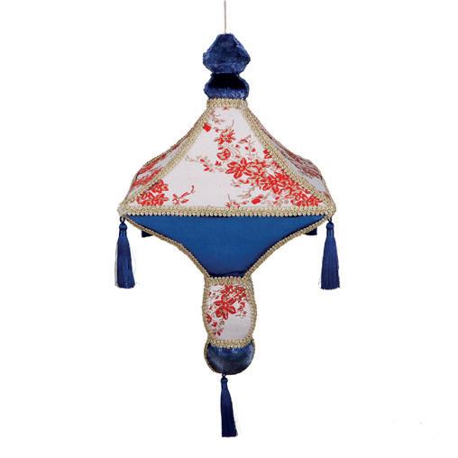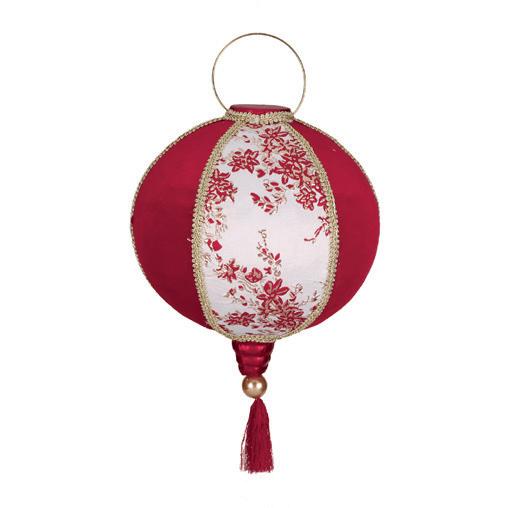 82009 FABR.LANTERN W/TASSEL ORN RD/WH/GLD 31CM