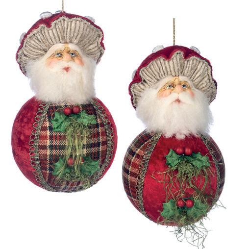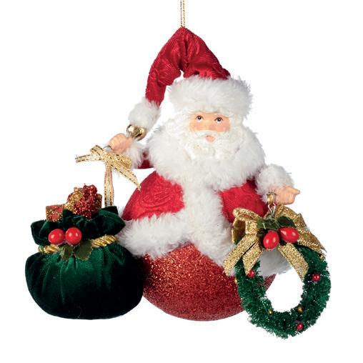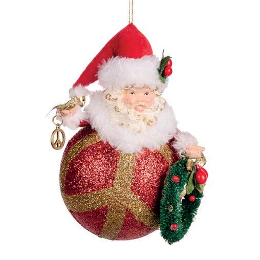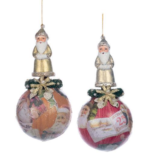 FOR SEASON SANTA ON BALL ORN ASS/2 BURG 18CM