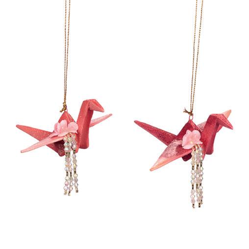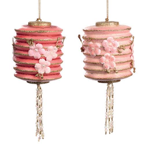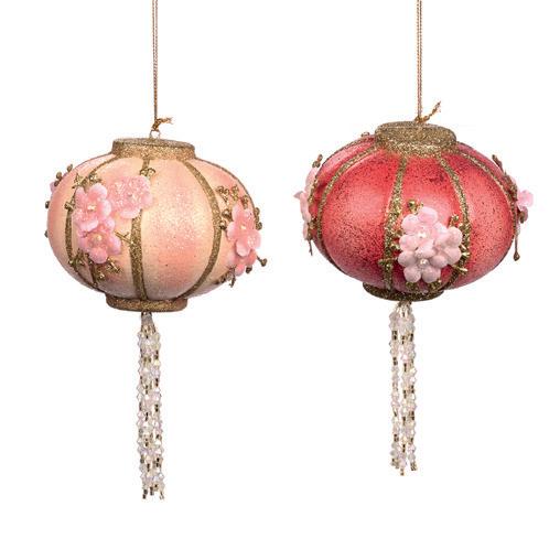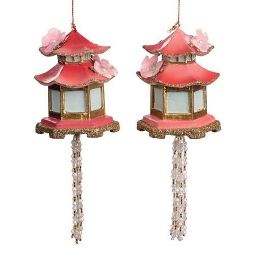 PAGODA LANTERN W/TASSEL ORN ASS/2 PNK/RD 8CM