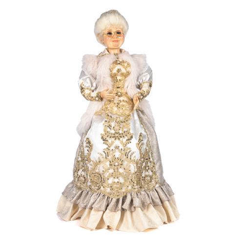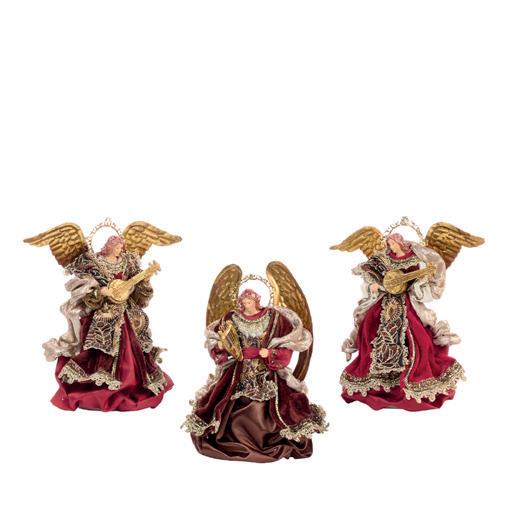 +FABR.ANGEL TREE TOPPER TT ASS/2 GLD/BRWN/BRG 27CM AS 25156 + FABR.BROC.SANTA W/FRUITS TT BURG 46CM AS 25158 + FABR. SANTA W/ORN/STAFF TT GLD/CRM 46CM AS 25161