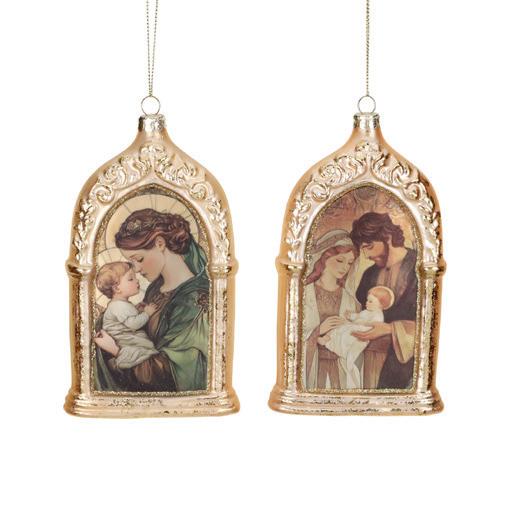 GLSS HOLY FAMILY/MARY ARCH SCENE ORN ASS/2 GLD 14,5CM TR 18001 POINS.FLOWER FAIRY ORN ASS/3 RD 16,5CM TR 18002