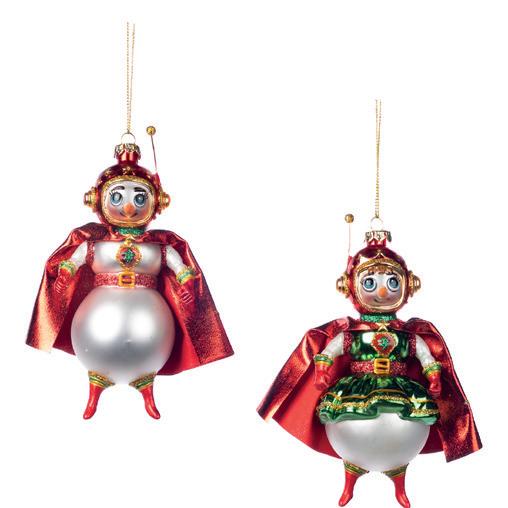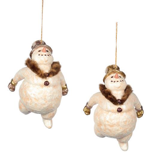 GLSS/FABR.SUPER SNOWMAN ORN ASS/2 WH/RD/GRN CM