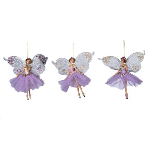 + TULLE BIG WING FAIRY ORN ASS/3 WH/PRPL 19CM