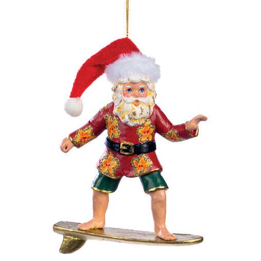 GETAWAY SURFING SANTA ORN RD/GRN/GLD 13CM
