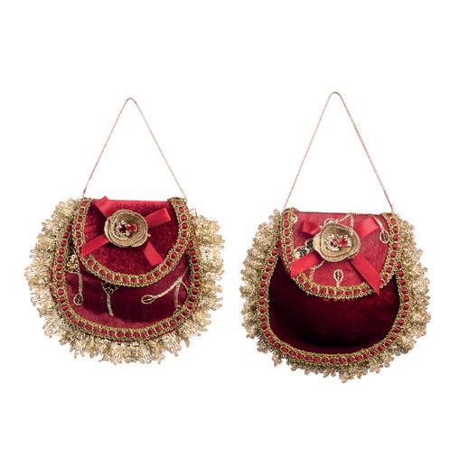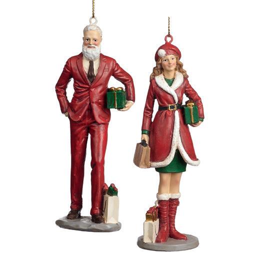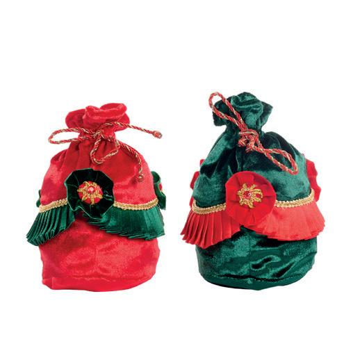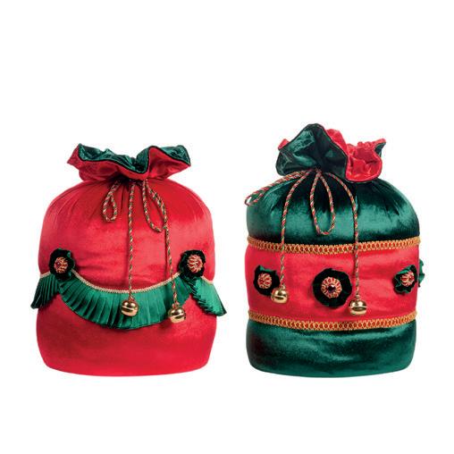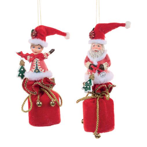 21002 + FABR.SANTA W/GIFT BAG ORN RD/GRN 18CM