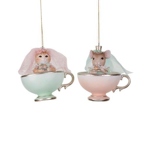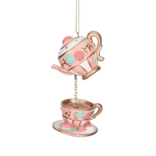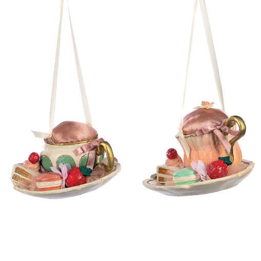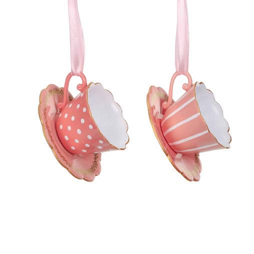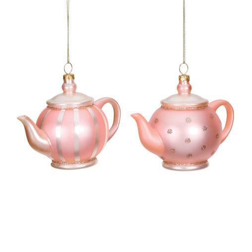 GLSS STRIPED/DOTT.TEAPOT ORN ASS/2 PNK/GLD/CRM 9,5CM TR 18015