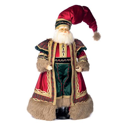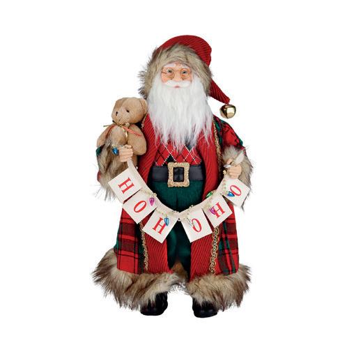 FABR.TARTAN SANTA W/HOHOHO TT RD/BRWN 46CM