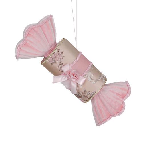 82040 FABR.BROC.FLORAL CANDY ORN PNK 36CM