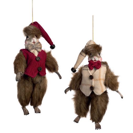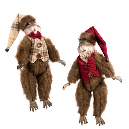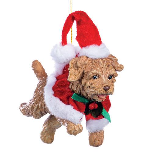 FAM.FEAST JUMP.XMAS DOG ORN BRWN/RD 17CM