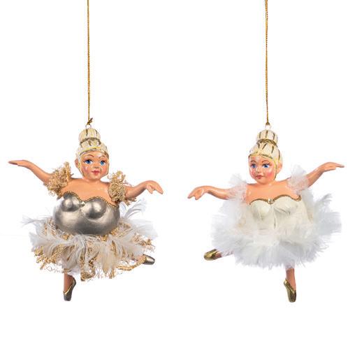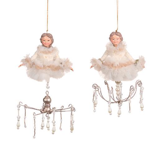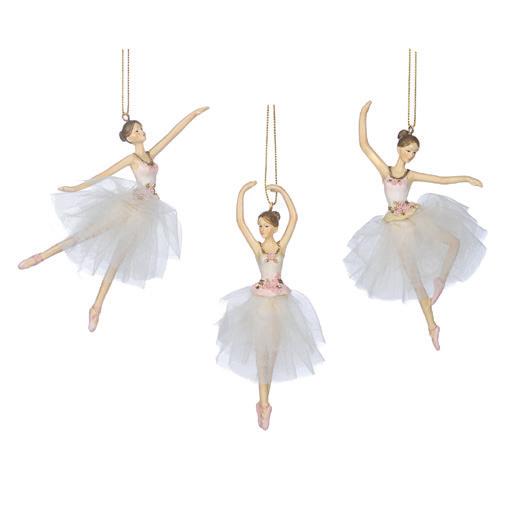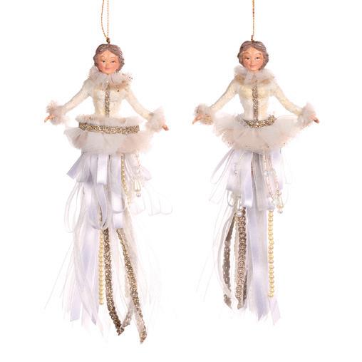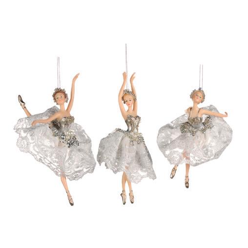 + LACE/PEARL BALLERINA ORN ASS/3 WH/SLV 19CM TR 20472