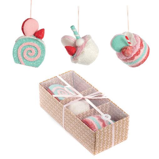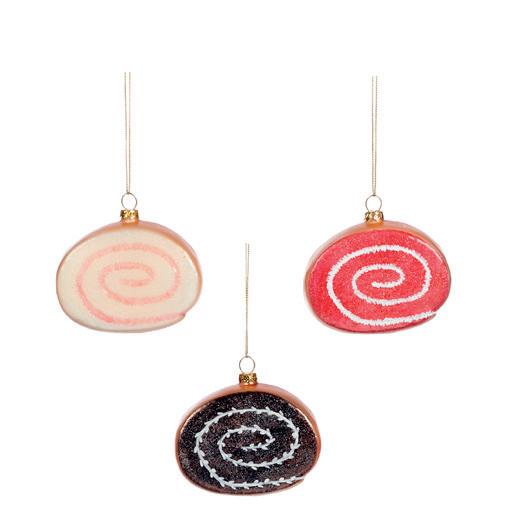 + GLSS CAKE ROLL ORN BOX/3 PNK/BRWN 8,5CM