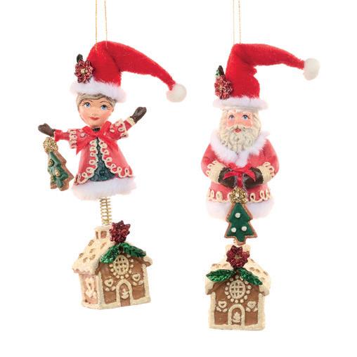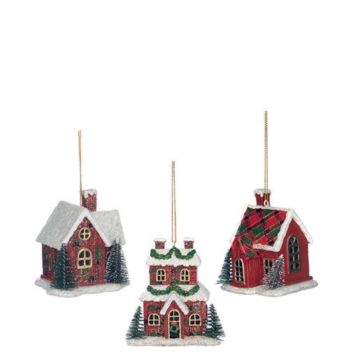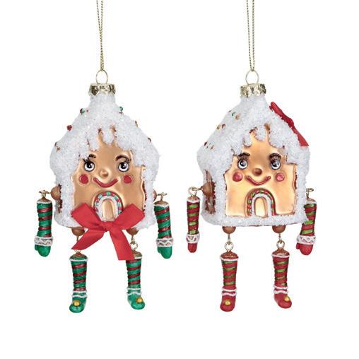 GLSS DANGL.GINGERBR. HOUSE ORN ASS/2 BRWN/RD 13,5CM