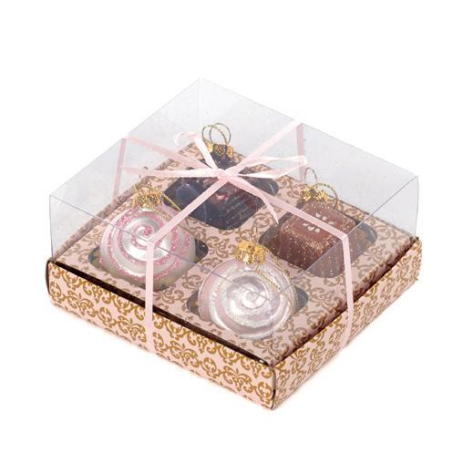 + GLSS CHOCOLATE ORN BOX/4 PNK/BRWN 5CM TR 23011