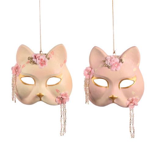 PAGODA LUCKY CAT MASK ORN ASS/2 PNK/BLU 12CM