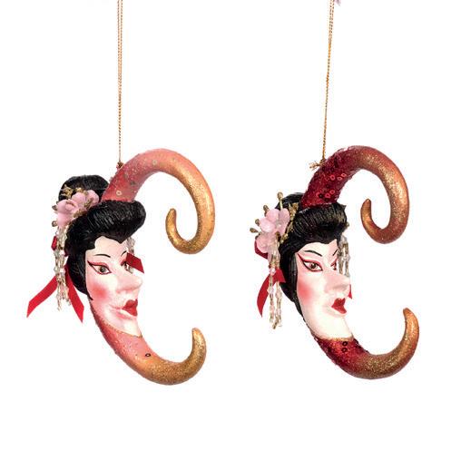PAGODA GEISHA MOON ORN ASS/2 RD/BLK 13CM B 86060