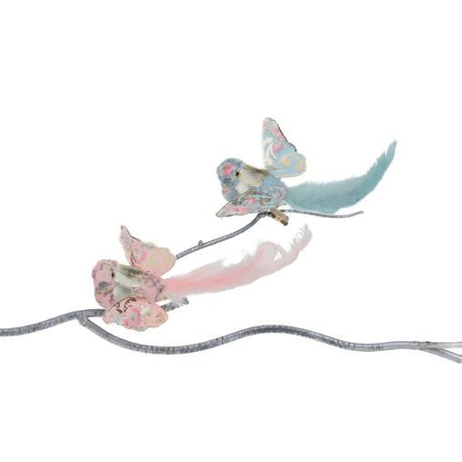 FABR.FLORAL FLY BIRD ON CLIP ASS/2 PNK/BLU 18CM