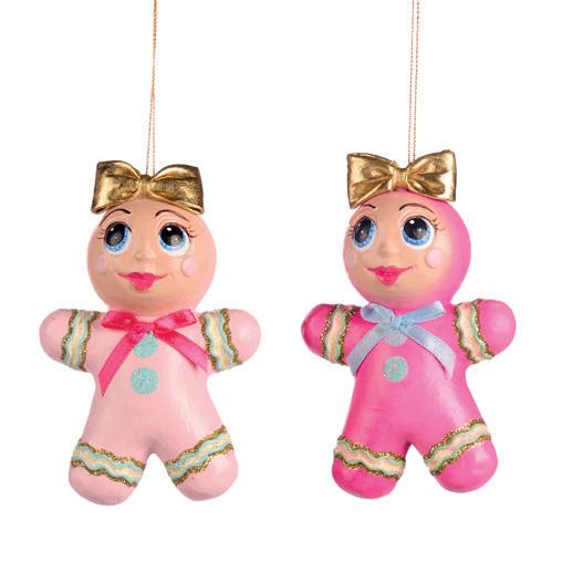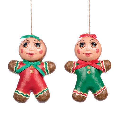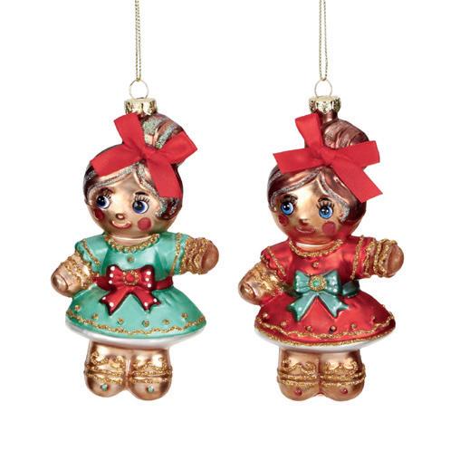 GLSS GINGERBREAD GIRL ORN ASS/2 RD/GRN 14CM