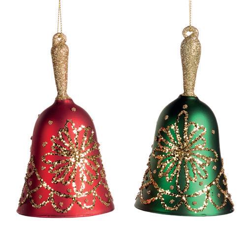 GLSS XMAS CAROL BELL ORN ASS/2 GLD/YL/RD 10CM