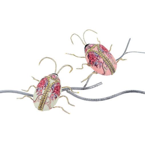 50009 + FABR.FLORAL BUG ON CLIP ASS/2 PNK/CRM 14CM