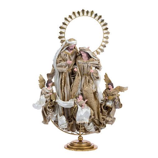 Z 19606 + FABR.MET.HOLY FAMILY W/ ANGELS ON BASE CRM 100CM