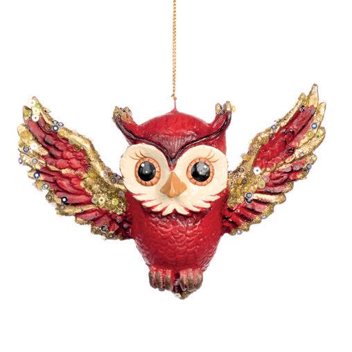 FABR.BROC.PLUME OWL TT ASS/2 RD/GLD 32CM