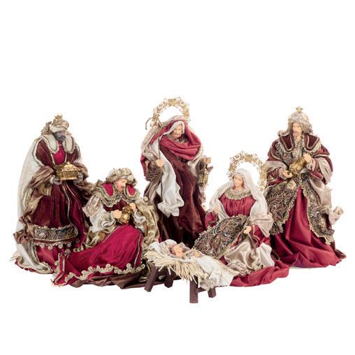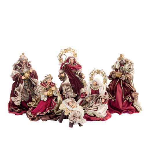 + FABR.HOLY FAMILY ON BASE BURG/CRM/BRWN 41CM