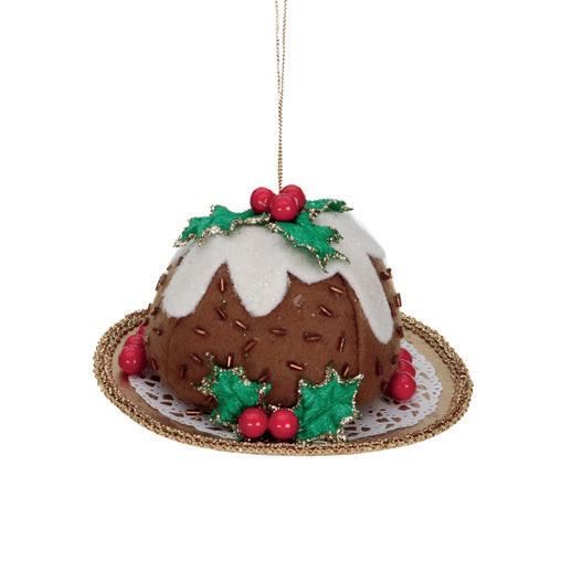 FAM.FEAST XMAS PUDDING ON PLATE ORN ASS/2 RD 12CM