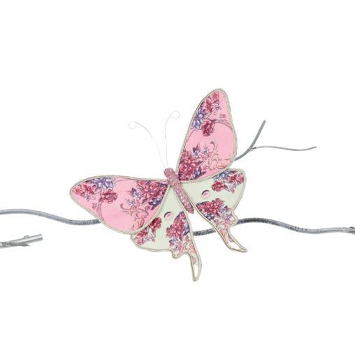 50008 + FABR.FLORAL BUTTERFLY ON CLIP PNK/CRM 23CM