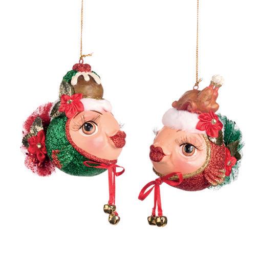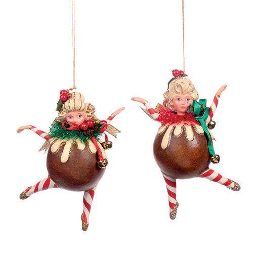FAM.FEAST CHUBB.XMAS PUDDING GIRL ORN ASS/2 BRWN 11CM B 86204