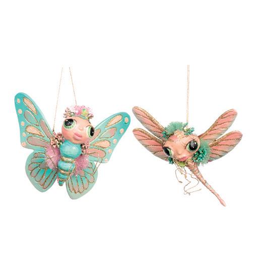 BUTTERFLY FAIRY W/ANIMAL ORN ASS/2 RD/GRN/CRM 15CM TR 18004 STRIPED/DOTT.CUP/SAUCER